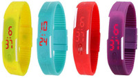 intricate Led Band Watch Combo of 3 Brown, Green And Yellow Digital Watch - For Boys & Girls