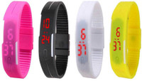 Kissu Led Magnet Band Combo of 4 Sky Blue, White, Brown And Red Digital Watch - For Men & Women