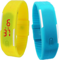 Kissu Led Magnet Band Combo of 4 Sky Blue, Yellow, Purple And Red Digital Watch - For Men & Women