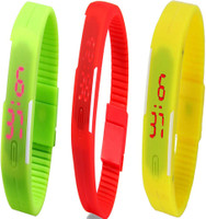 Kissu Led Magnet Band Combo of 4 White, Brown, Green And Orange Digital Watch - For Men & Women