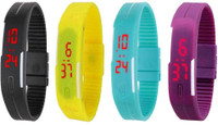 Kissu Led Magnet Band Combo of 4 Green, Sky Blue, Orange And Blue Digital Watch - For Men & Women