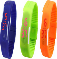 Kissu Led Magnet Band Combo of 4 Orange, Black, Green And Red Digital Watch - For Men & Women