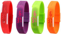Kissu Led Magnet Band Combo of 4 Black, Purple, Orange And Yellow Digital Watch - For Men & Women