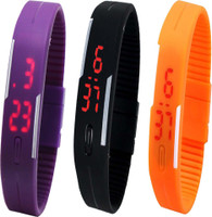 Kissu Led Magnet Band Combo of 4 White, Blue, Purple And Pink Digital Watch - For Men & Women